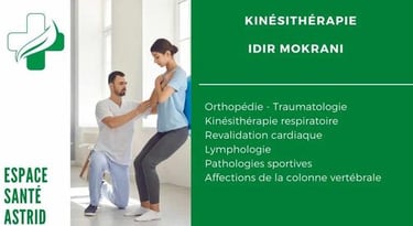 Idir Mokrani, kinésithérapeute à l'espace santé Astrid, traite la kinésithérapie générale, les affections de la colonne vertébrale et les pathologies sportives.